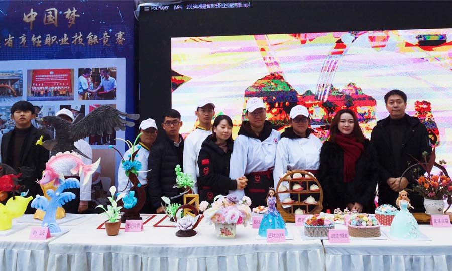 我系师生作品展出中西点(韩式裱花蛋糕、提褶包、花瓶酥);果蔬雕刻,泡沫雕糖艺等作品,作品展出获得了现场领导和观众的一致好评。