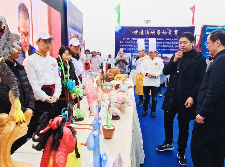 我会组织了近年来省级烹饪职业技能竞赛的优秀选手和单位参加了竞赛成果展示。2013年福建省技术能手获得者冯飞、2014年福建省五一劳动奖章获得者雷文华、2015年福建省工人先锋号获得者福州黎明职业技术学校的师生、2018年省烹饪职业技能竞赛中式面点师第一名杨丽红以及中式烹调师优秀选手林志强等现场展示了热菜、中西点心、冷拼、雕刻、糖艺等作品,闽菜大师罗世伟、危挺群、林丛亲临活动现场指导。人大常委会副主任、省总工会主席黄琪玉出席活动,并在巡展中对近年来烹饪竞赛的成果给予了高度的肯定。