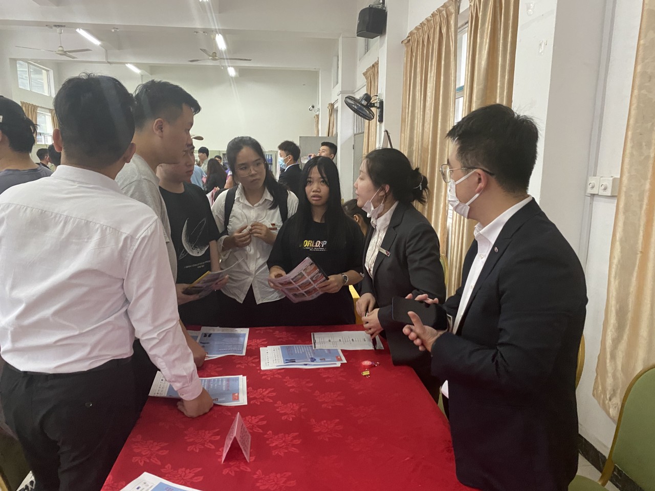 其次,企业宣讲完毕,同学们纷纷到自己心仪的企业展台进行面对面交流,进一步了解企业情况。