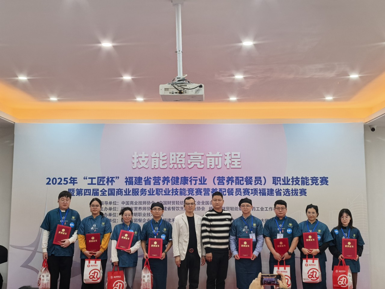 2025年11月22日-23日,中国商业技师协会、中国就业培训技术指导中心、中国财贸轻纺烟草工会全国委员会指导,福建省营养师协会、福建省财贸轻纺烟草医药工会工作委员会主办的2025年“工匠杯”福建省营养健康行业(营养配餐员)职业技能竞赛在福州黎明职业技术学院举办。我系选派吴丽珍、张雨彤、吴艺军三名选手凭借扎实功底与创新理念脱颖而出,以总分第一斩获团体一等奖。