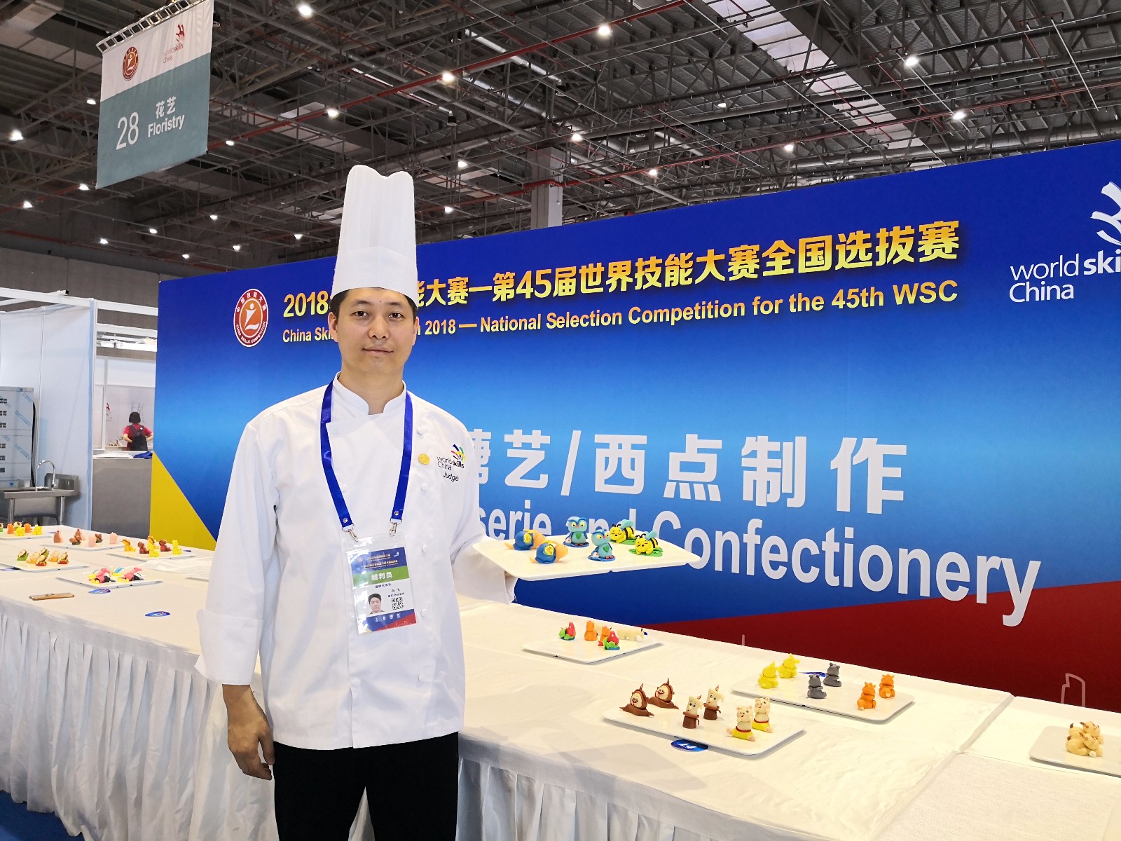 6月10日—16日,冯飞主任受省人力资源部委派赴赴上海第45届世界技能大赛糖艺西点赛项做裁判,本次大赛共设有糖艺西点、烘焙、西餐烹饪、汽车技术、木工、机电一体化、网络系统管理、时装技术、健康和社会照护等34个比赛项目,覆盖世界技能大赛中运输与物流、制造与工程技术、结构与建筑技术、信息与通信技术、创意艺术与时尚、社会与个人服务等全部6大领域。来自全国46个代表队、约900名选手参加上海赛区比赛。本次大赛的几大特点:一是赛事规格高,对标世赛。第45届世赛全国选拔赛是2018年中国技能大赛系列赛事中最重要的一项大赛。人社部、上海市领导和世界技能组织的主要官员都将参加相关活动。办赛模式和竞赛规则完全接轨世赛要求,比赛项目涵盖了世赛全部6大领域。二是比赛规模大,活动内容丰富。从6月12日开幕式到16日成绩公布、技术点评一共5天,其中比赛日为13日到15日,赛场面积达5.6万平方米。比赛时间、比赛项目、技能展示与互动体验项目数、赛事场地规模都创下历史新高。三是参赛人数多,比赛水平高。全国各地对技能人才和技能比赛越来越重视,经过地市、省级多轮选拔,共有来自各省、自治区、直辖市及新疆生产建设兵团、行业组织、中央企业的46个代表队、约900名优秀选手参加上海赛区的比赛,参赛人数为历年之最。其中上海代表队参加49个项目,参赛选手73人。四是社会和媒体关注度高,群众参与积极性强。6月13至15日三个比赛日期间,预计将有来自企业、院校、社会培训机构约6万人到现场观摩大赛并参与技能互动和体验项目,中小学学生约3万人。