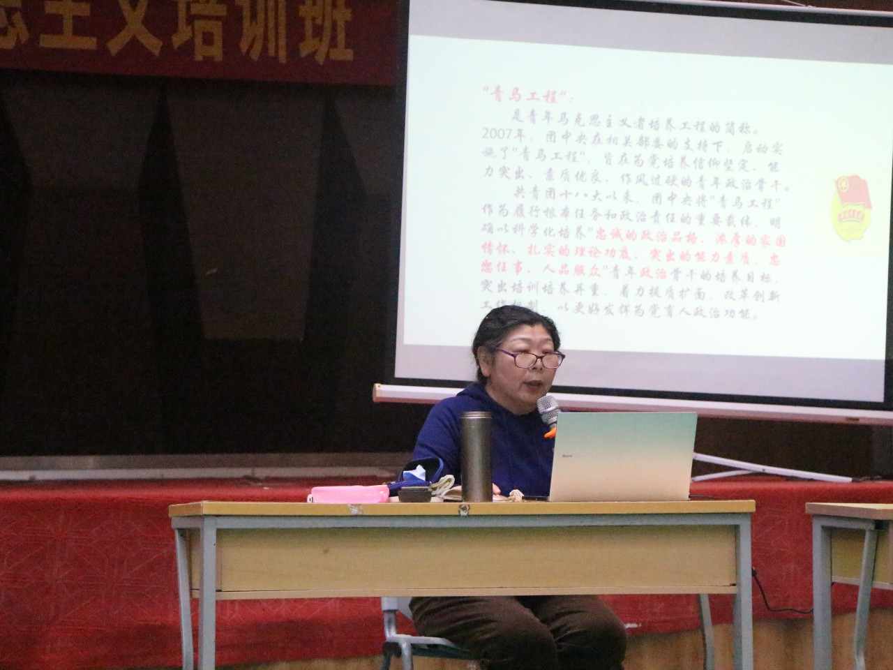 4月19日下午,思政教研部魏立娜教授在学院第四期青马工程培训班上作了题为《做坚定的青年马克思主义者》专题报告。报告围绕“为什么要成为青年马克思主义者”“如何培养青年马克思主义者”“怎么为中国特色社会主义注入新活力”这三大课题展开,全体青马班220多位学员听取了报告。