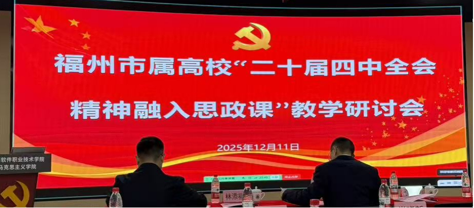 为深入贯彻落实党的二十届四中全会精神,推动新时代思政课高质量发展,2025年12月11日,在福州市教育局的精心指导下,福州市属高校思政课教学协作中主办,由福州软件职业技术学院、闽江学院承办,“将党的二十届四中全会精神融入思政课教学研讨会”。我校马克思主义学院高度重视此次研讨机会,由魏立娜、李佳双两位老师参会学习。