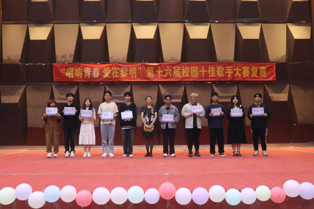 最后,在工作人员的引领下,全体参赛选手和评委合影留恋。今天我们激情四射,共同唱响青春的旋律。今天我们激昂青春,共同展现青年大学生昂扬向上的精神面貌!取得圆满成功。用歌声献礼伟大的祖国,用旋律点缀青春的记忆。第十六届校园十佳歌手大赛复赛更好地激发了学生爱党爱国的情怀,弘扬了时代精神,同时为大家提供了展示才华的舞台,营造了良好艺术氛围。