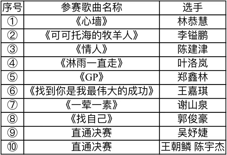 注:以上名单按照晋级选手演唱顺序排名