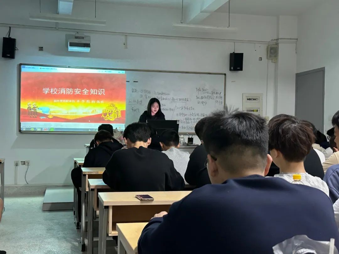 班会课上,辅导员利用图片、视频等,为同学们推送火灾案例、消防警示教育片,引导学生关注消防安全、学习消防知识;同时结合校内规章制度加强宣传用火用电安全、逃生自救等常识,进一步强化学生消防安全意识和自护自救能力。