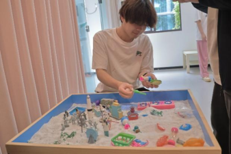 心理咨询室内,独特新颖的沙盘游戏,吸引了众多黎明学子。他们在沙盘游戏的创造过程中宣泄心中的情绪,享受乐趣,舒缓压力,促进身心均衡健康发展。