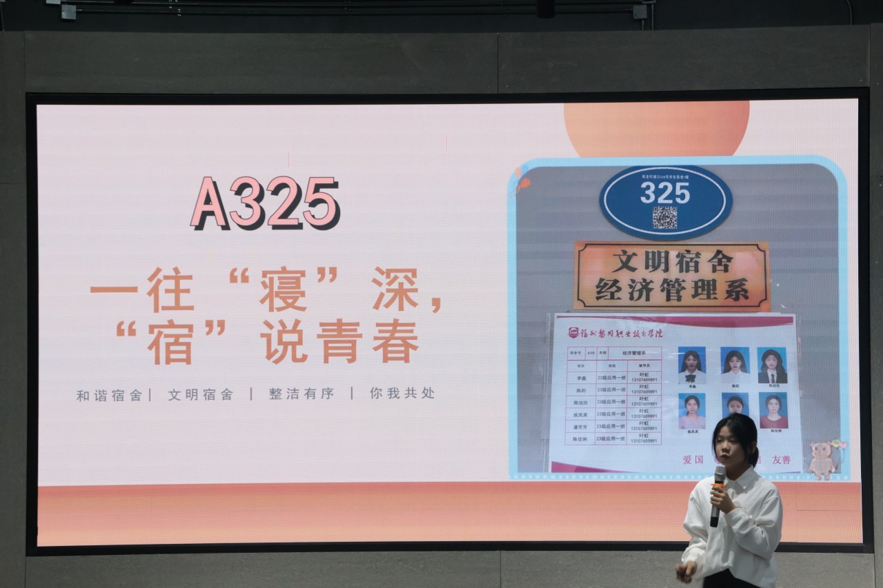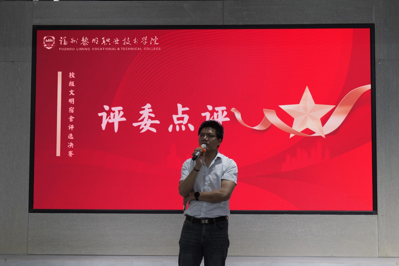 “明亮清雅之室,共建和谐新风”为了进一步加强宿舍管理,推动文明宿舍建设,打造积极向上、文明和谐、健康安全的宿舍文化氛围。6月4日,我院在圆楼举行2023-2024年度校级文明宿舍评选决赛暨表彰大会。副院长魏洪、党委副书记刘鹏、各系党支部书记、全体辅导员们出席本次比赛。学工处处长陈伟伟、总务处负责人陈丽红、学工处副处长吴映华、学工处劳动教育科科长聂计闽、学工处就业科科长黄健、总务处曾仁凯、学工处林晨育、院团委叶祖煌、学工处贾云鹏担任本次活动的评委。
