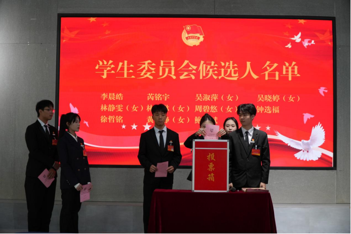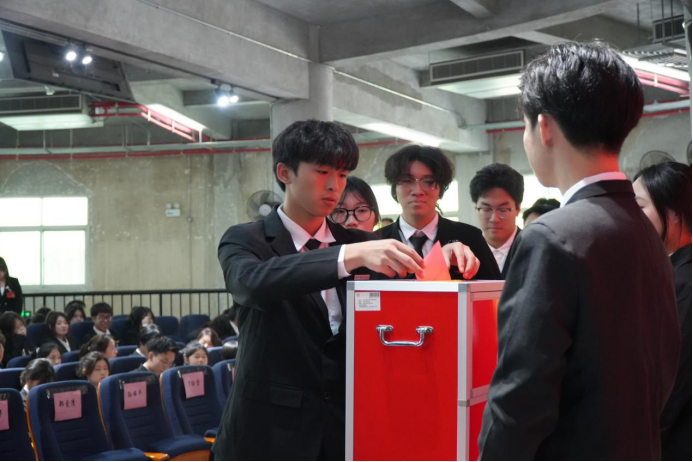 学生代表依次上台投票