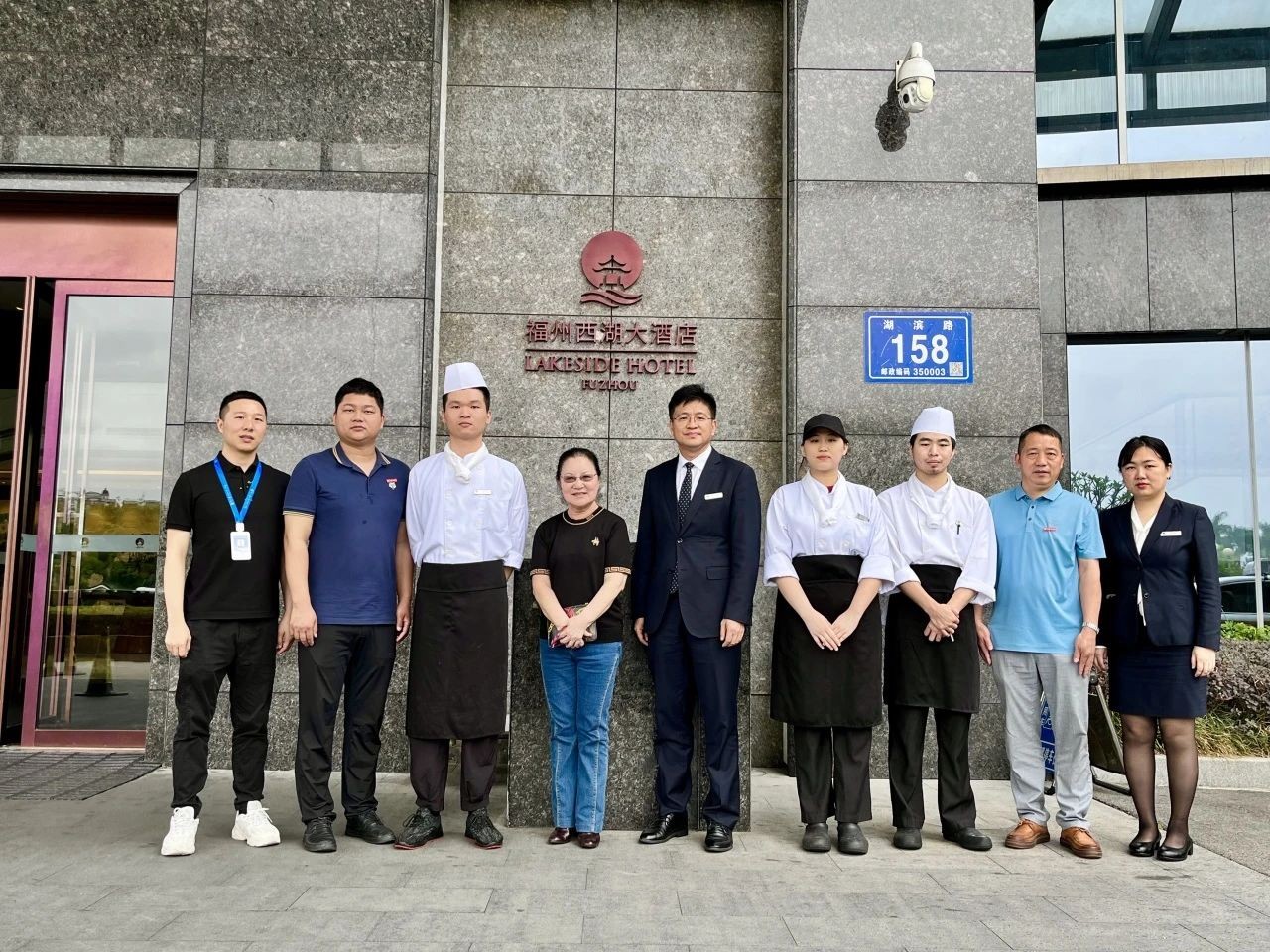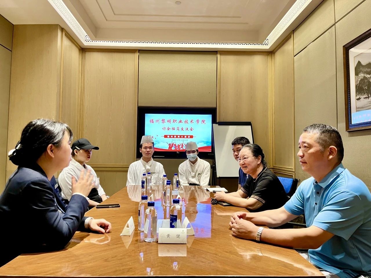 在福州西湖大酒店,总经理洪仁寿对王苏华董事长一行的到来表示热烈欢迎,介绍了企业的文化和管理模式,对深化校企合作表达出高度期待,表示今后将安排行政总厨等资深技师定期入校开展实务教学。他认为,企业专家参与教学不仅能强化学生实践认知,更能促进理论教学与行业标准的精准对接。
