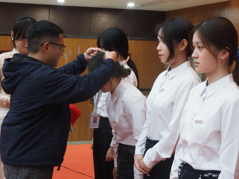 授牌环节中,各位老师依次为新生干事佩戴工牌。每一块工牌不仅代表着身份,更承载着信任与期盼。