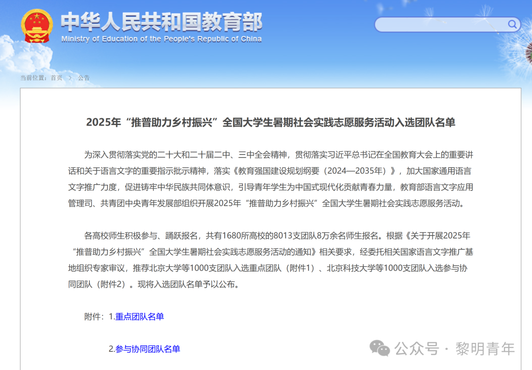 喜报 | 我院团队成功入选2025年“推普助力乡村振兴”全国大学生暑期社会实践志愿服务团队