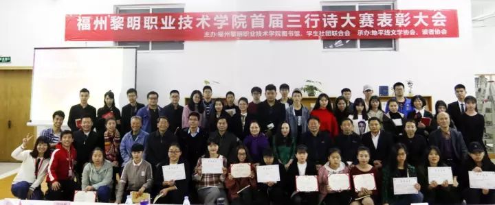 三行诗,绘风采,三行情,描万态。2017年11月30日晚,我院首届三行诗大赛表彰大会在图书馆隆重召开。我院董事长王苏华女士携众领导及各系主任、党支部书记等13位嘉宾出席,20多位获奖老师以及近200名学生参加了本次大会。