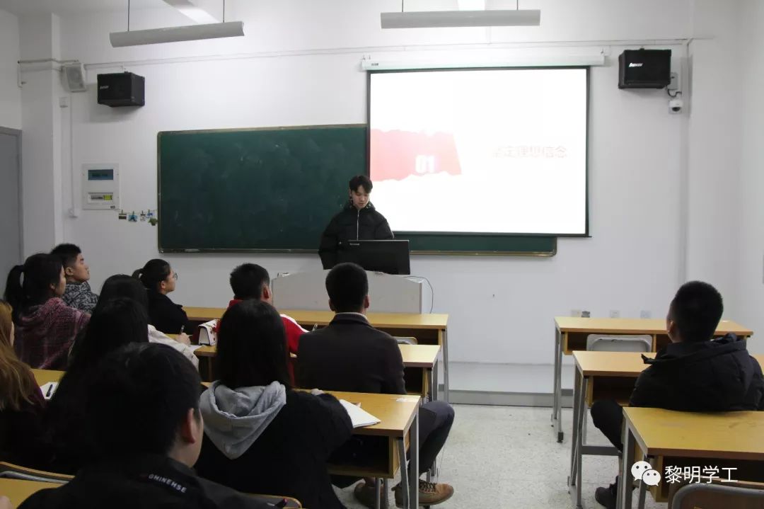 接下来是叶永清同学分享心得。他从一张意义深远的图片突出“我们当代大学生要做到青年当自强,坚定我们的理想信念”的观点,引用习近平总书记对当代大学生的期望。在自己的工作中,要对院团委自觉担负起这一光荣任务,加强调查研究,制定完善计划,狠抓工作落实。最后他总结到,我们一定要使自己首先成为马克思主义理论的坚定信仰者,对马克思主义的基本原理做到真学、真信、真用。要充分发挥示范作用,辐射带动更多的大学生加入到理论学习的队伍中来,促进一大批青年马克思主义者的不断涌现。