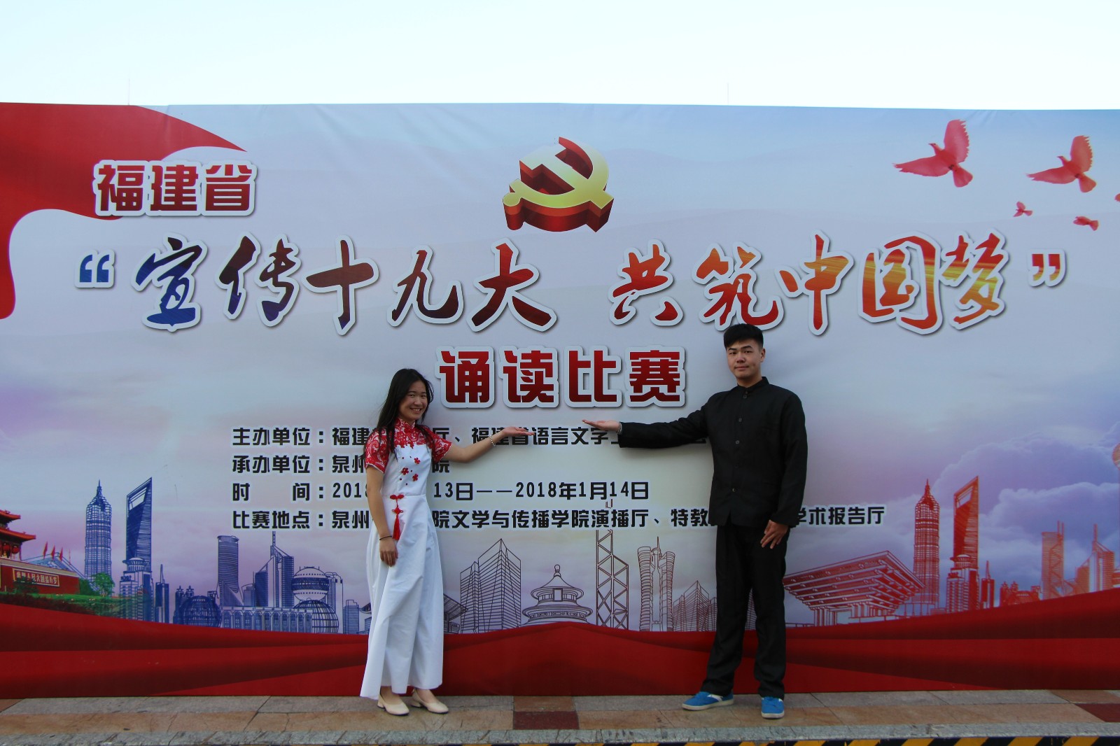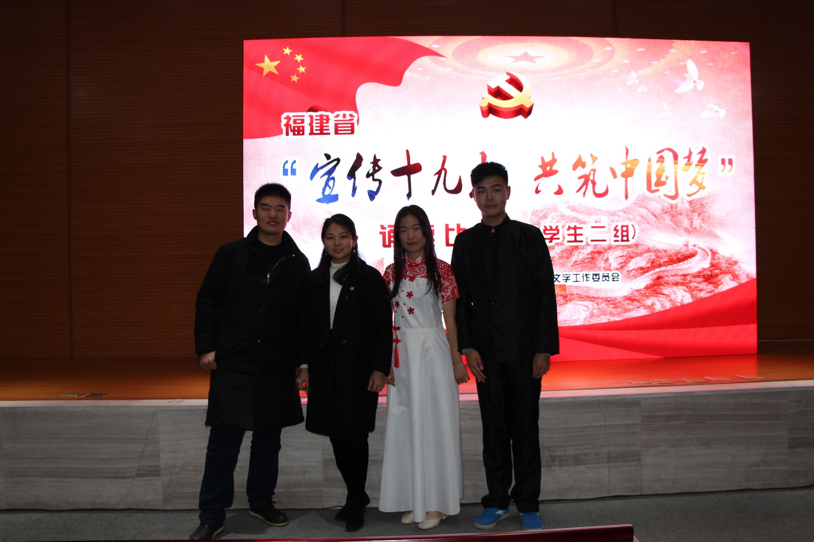 寒假期间,在福建省教育厅、福建省语言文字工作委员会主办的“宣传十九大,共筑中国梦”福建省高校大学生诵读大赛总决赛(高职高专组)中,我院商务系学生林婉婷、龚佳宝分别荣获二等奖和三等奖!