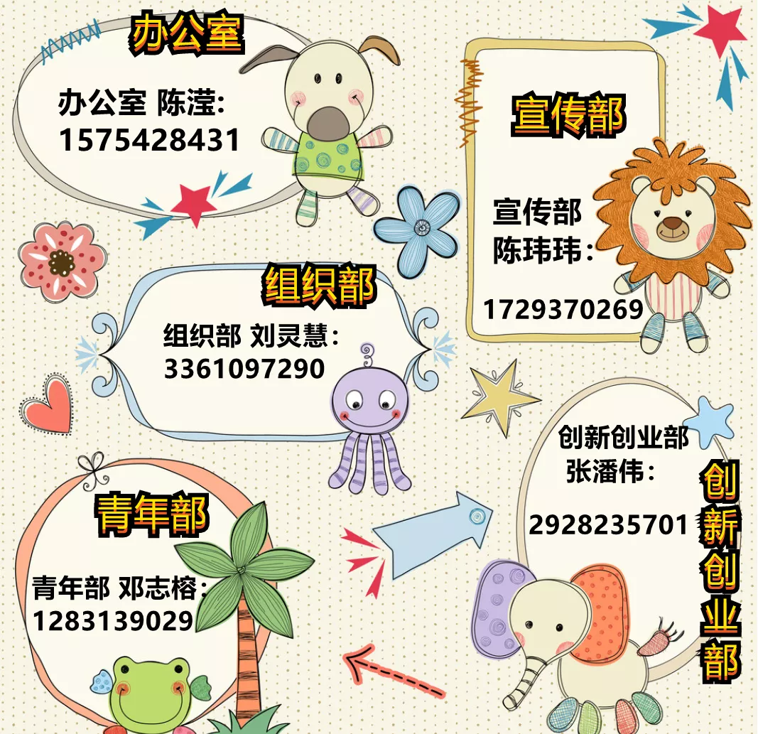 院团委简介:我校先进青年的群众组织,作为党的助手和后备军,担负着组织青年,引导青年,服务青年的基本职能。我们致力于“家”文化的建设,主动贴近青年,团建活动丰富。在这里,你既可以提高自己的社交能力,拓展自己的人际关系,又可以锻炼你的创新能力和组织策划能力,现在大家来了解院团委的5个部门吧。分别是办公室、宣传部、组织部、青年部、创新创业部。