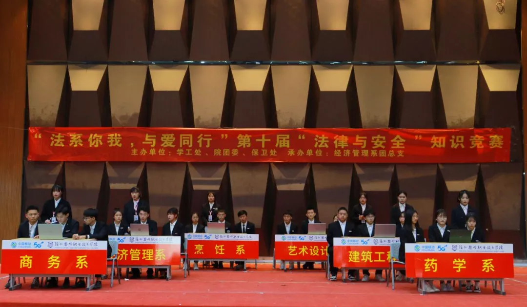 经济管理系代表队以丰富的法律知识储经济管理系代表队以丰富扎实的法律知识储备夺得第十届“法律与安全”法治知识安全竞赛的桂冠。烹饪系代表队获得亚军,建筑工程系代表队获得季军,商务系、艺术系、药学系代表队获得优秀奖。