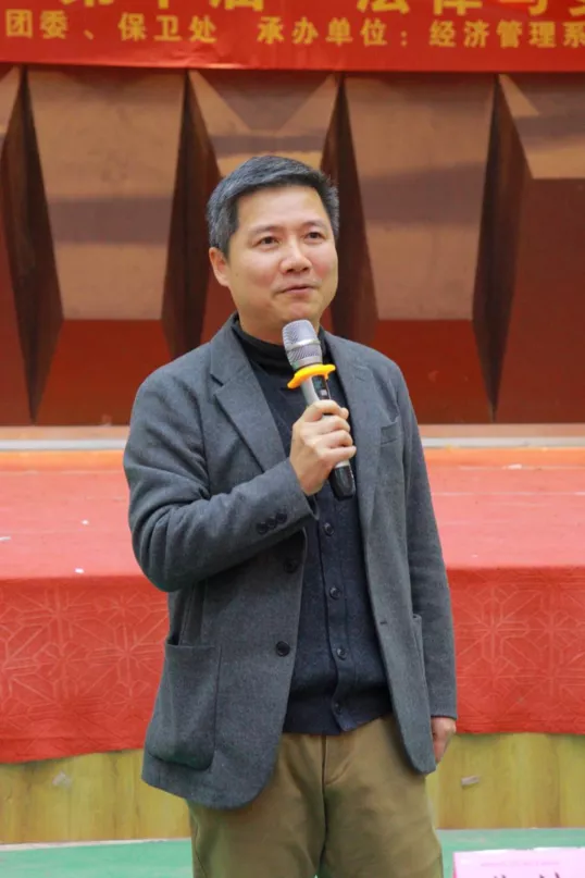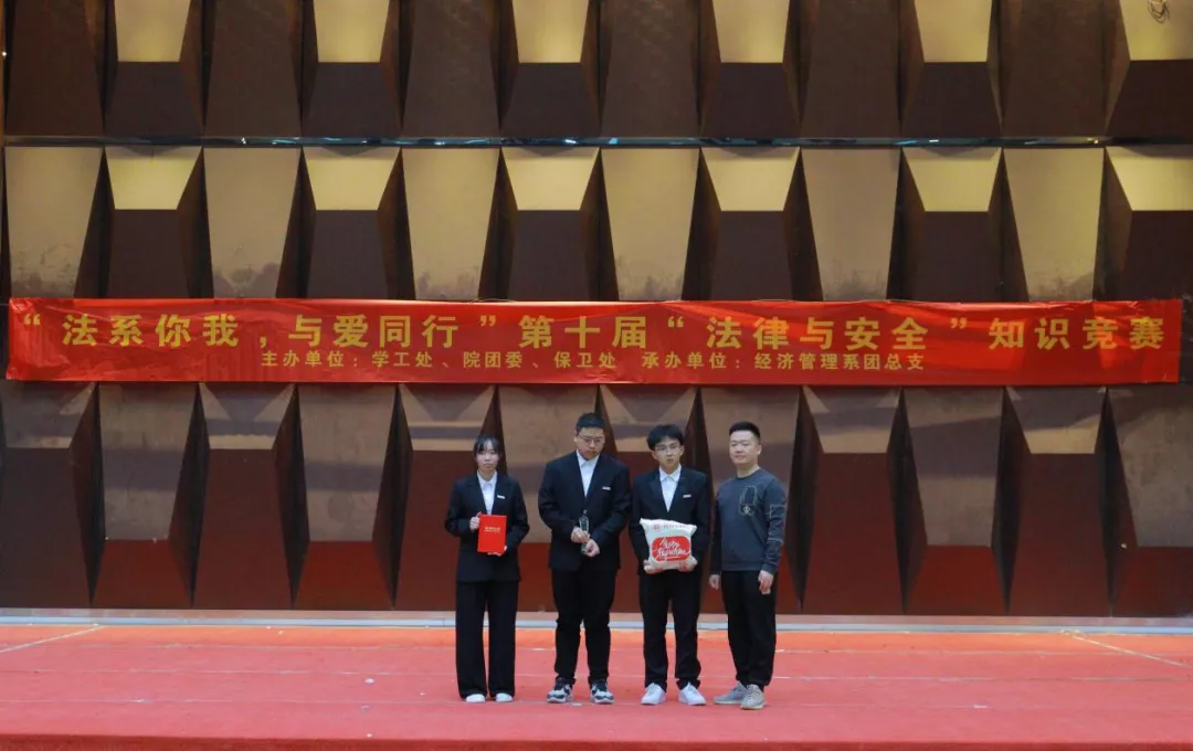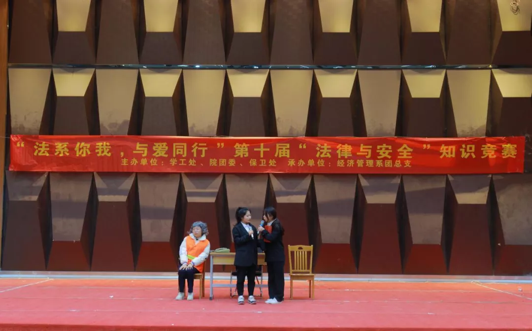 为贯彻坚定不移走中国特色社会主义法治道路的要求,坚持以习近平法治思想为指引,全面加强对大学生群体的对法律学习宣传力度,不断提升大学生法治意识与法治素养,培养忠实崇法、自觉守法、坚定护法的大学生。2021年12月9日下午14时,由学工处、团委、保卫处主办,经济管理系团总支承办的“法系你我,与爱同行”第十届“法律与安全”知识竞赛在学术报告厅举办。莅临本场比赛的领导有:院党委书记廖诗忠教授,副院长魏洪老师,院党委副书记王新华老师,出席本次比赛的还有各处室代表、党支部书记、学工处干部以及全体辅导员们。