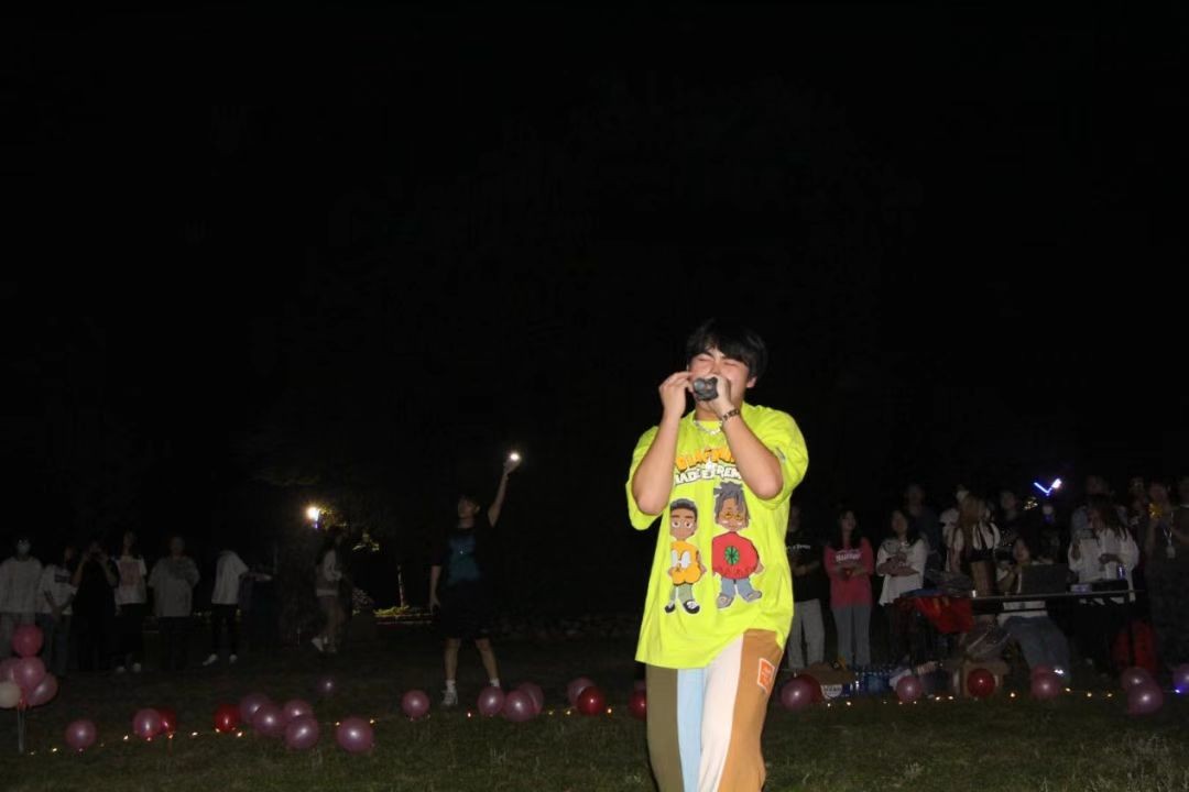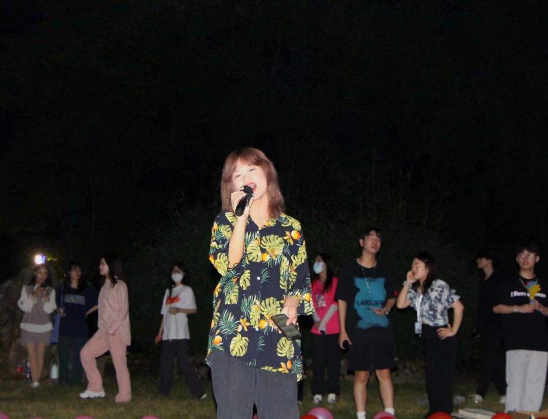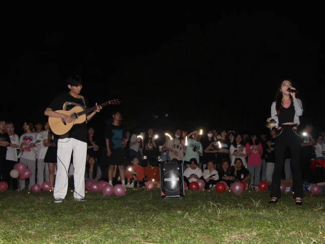 接着就让我们一起迈入音乐世界吧,演唱者们用饱满的热情和魅力的声音,给我们带来了别样的视觉体验和听觉盛宴,伴随着轻柔晚风坐在草地上的同学们也情不自禁跟着哼唱。