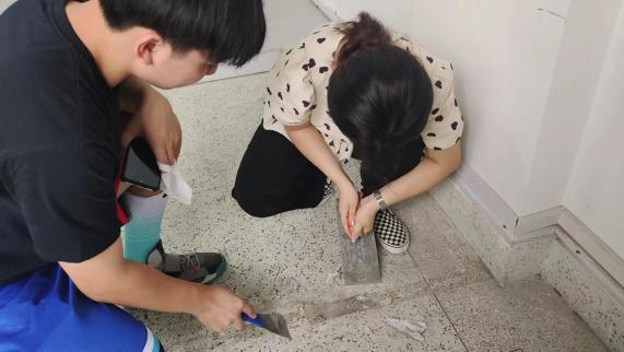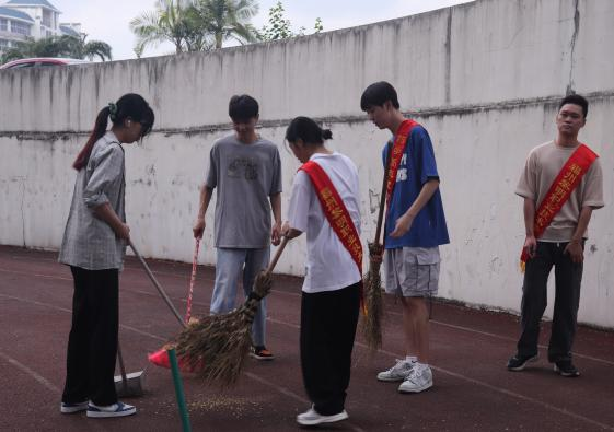 同学们不仅爱护我们的校园而且还在不忘在暑假期间进行社会实践活动,在劳动中接受锻炼、磨练意志、强化责任担当。