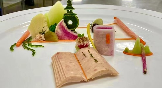 比赛由巴中市各区县选派的实力选手齐聚一堂,通过食品雕刻技能、中式烹调、中式冷拼、中式面点、中式酥点等综合技能考察。杨鹏飞凭借出色的厨艺技巧和扎实的烹饪理论基础,在比赛中脱颖而出,得到专家评委的连连称赞,彰显我校烹饪专业毕业生娴熟的技能水平和良好的职业素养。