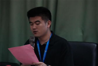学工处干部代表林晨育、贾云鹏作工作交流汇报