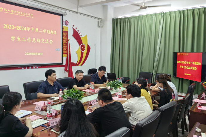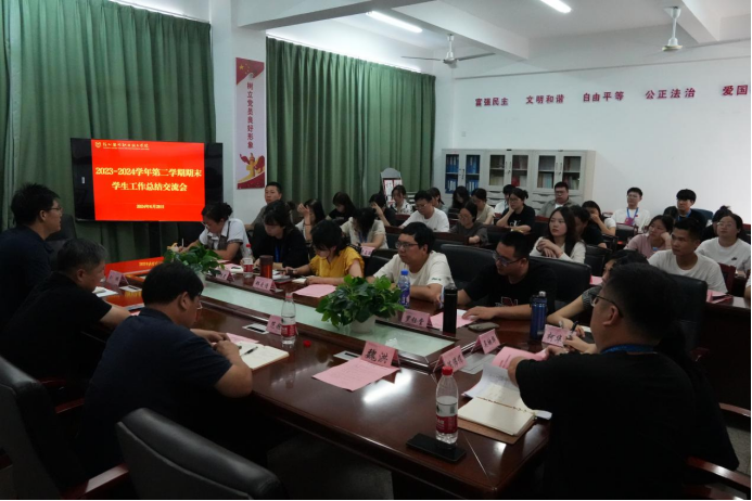 为总结和回顾过去一学期学生教育管理工作成效,加强学生工作队伍建设,进一步提升学校学生思想政治教育工作水平。近日,学工部(处)在L楼5楼会议室召开了2023-2024学年第二学期期末学生工作总结交流会。院长范超峰、党委书记廖诗忠出席会议并讲话,学工部(处)、各系党(团)总支部负责人及全体学工处干部、辅导员参加会议。会议由党委副书记刘鹏主持。