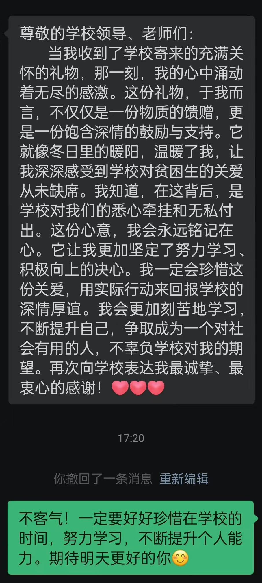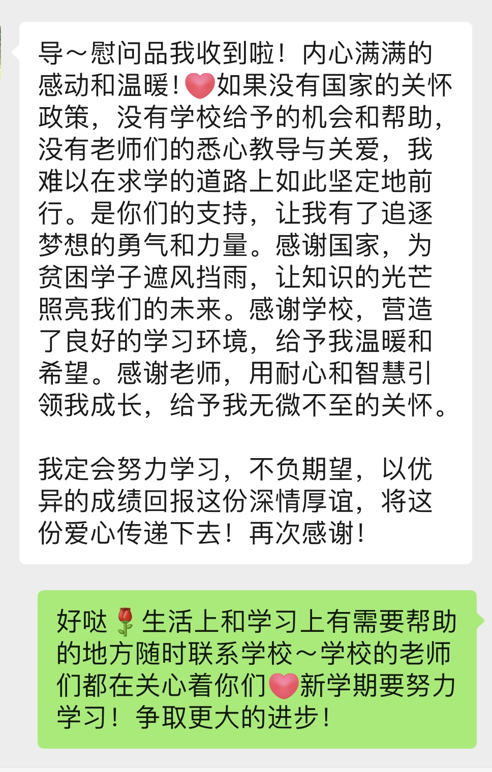 (受访学生传递感恩之情)