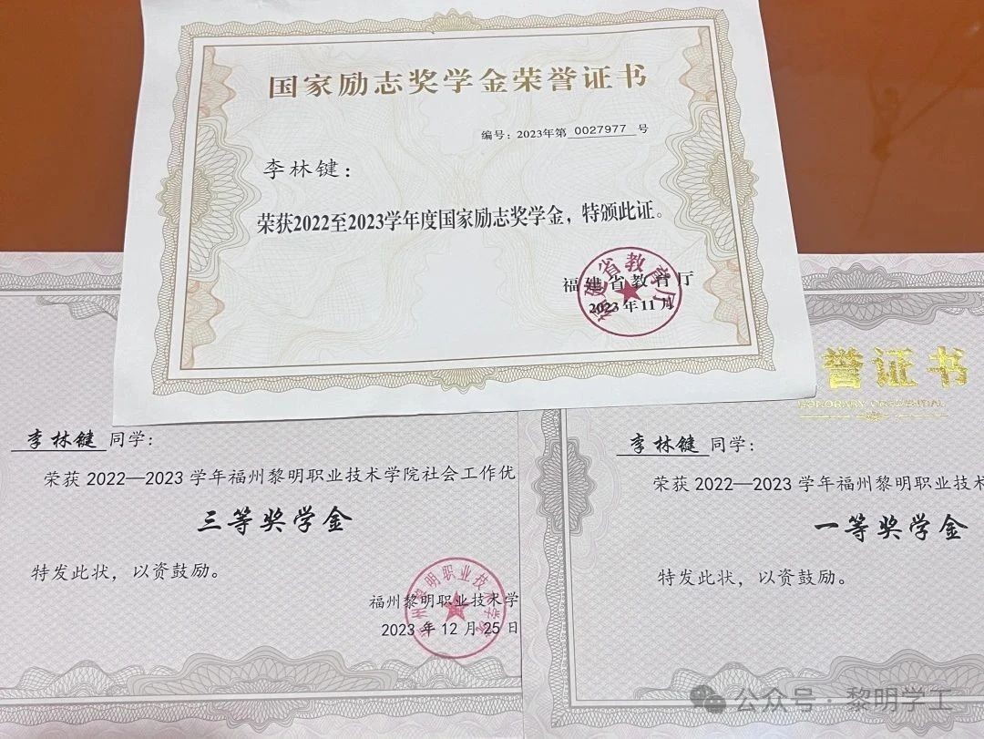 2.福州黎明职业技术学院学业优秀一等奖;