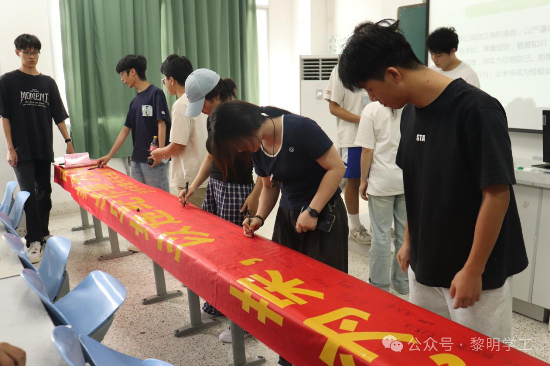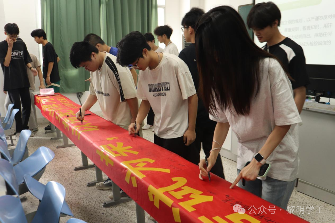 在宣誓环节,全体同学庄严起立,郑重承诺遵守考试规则、坚守诚信原则。宣誓后,师生们在诚信考试横幅上签名,以实际行动表达践行诚信的决心。
