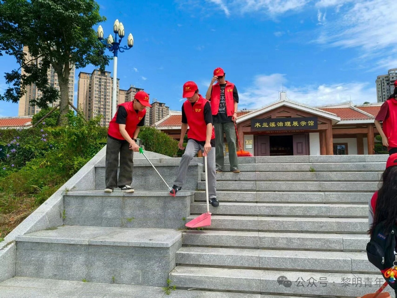 实践队首先开展“守护木兰溪 清洁母亲河”环境美化行动。队员们手持垃圾袋和夹子,在步道与滩涂区域分工协作,捡拾草丛中的塑料瓶、零食袋,仔细清理石缝中的烟头碎屑。同时,队员们还向居民发放生态保护手册,讲解垃圾分类与河流保护的重要性。尽管烈日炎炎,但队员们热情高涨。通过共同努力,河岸环境明显改善,展示出人与自然和谐共生的美好画面。