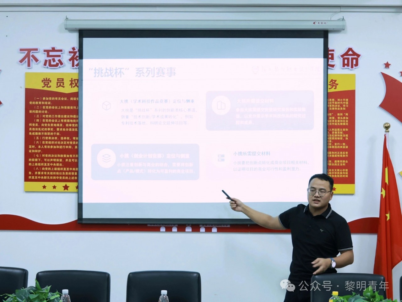▲学工处副处长黄健介绍培训安排