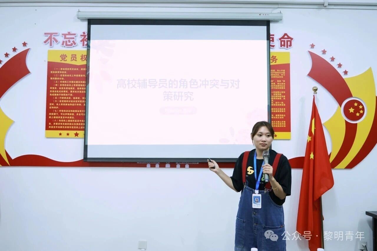 烹饪系辅导员陈烨就“高校辅导员角色冲突与对策”展开交流。她谈到,辅导员常面临教师与行政双重角色带来的职责模糊、价值冲突与时间压力,可通过增强自我觉察、加强与同行交流、利用数字预警等方式识别冲突,并建立干预机制。在应对策略上,她建议积极争取内外部支持、提升共情与沟通能力、构建快速响应机制,同时完善制度保障,共同营造良好的育人生态。