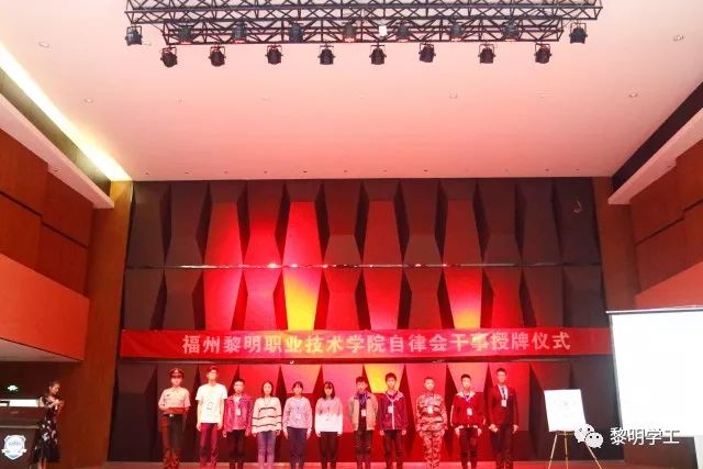 2017年11月7日下午,院自律会在学术报告厅举行了福州黎明职业技术学院第十届院自律会干事授牌仪式。学工处副处长王新华老师,院团委副书记王瀚程老师,学工处聂计闽老师及院“四委一站”各团队主席团成员出席了授牌仪式。