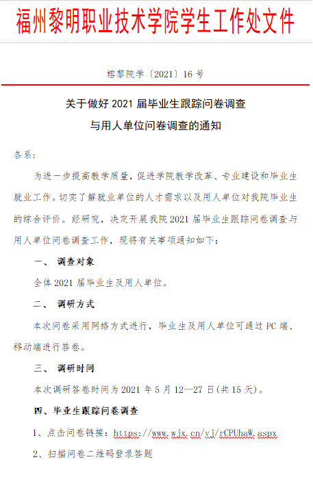 关于做好2021届毕业生跟踪问卷调查与用人单位问卷调查的通知