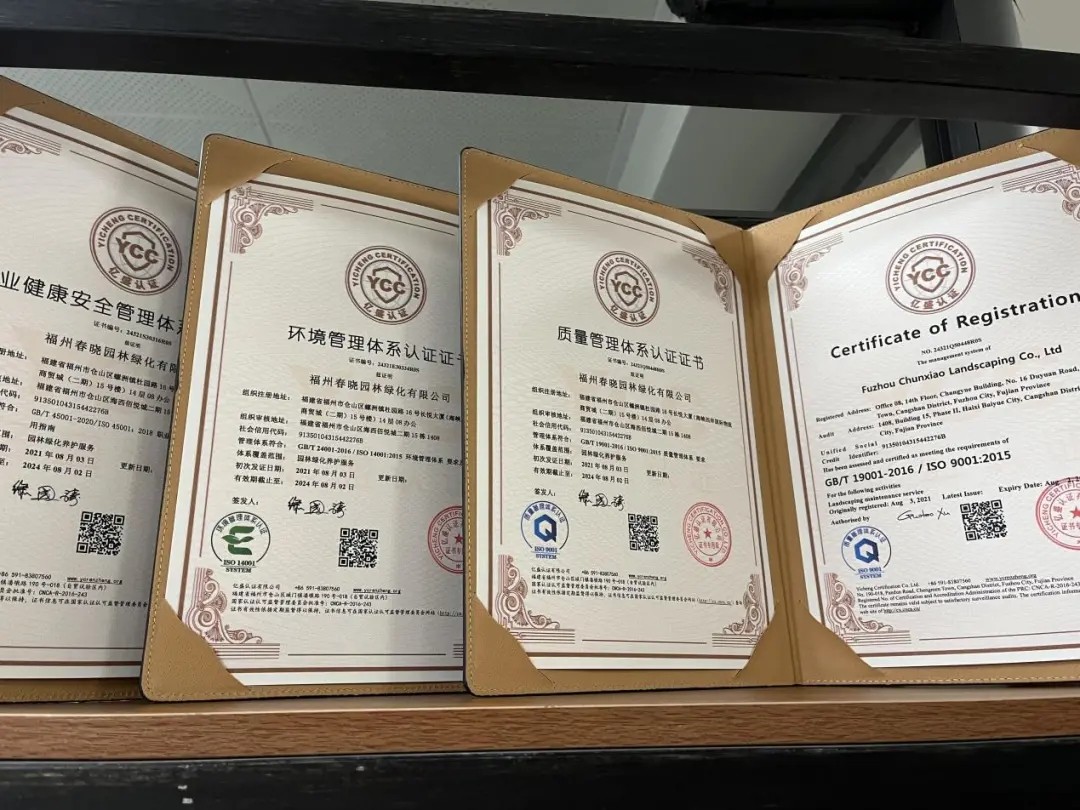 为了了解企业的运营模式,他从基层做起,做过品质主管也当过绿化经理,一步一步晋升再步入创业之路。回忆起那几年的生活,每天工作熬到深夜,第二天依旧早起,一次方案被否,连夜做出第二套方案,就这样日复一日,多少个起早贪黑的日子,枯燥乏味又单调的重复着。每一步都可谓艰难,可他也从未抱怨,放弃。正因为这样的坚持,他慢慢成长起来,逐步发现自身的不足和短板,从而不断完善自己,提升自己。现如今,走到这一个职业高度,每一步都是饱含汗水和艰辛,一步一个脚印,这是他应该得到的回报和收获。2018年,公司正式开始运营。从只会做设计到施工,反过来再到做整个EPC,把环节打通,相互配合。自身的专业知识在不断丰富,技术也在不断发展。随着行业发展的先进性和丰富性,林文主持施工的项目已遍布福建、江西两省,专注于市政绿化、庭院绿化、小区绿化及高端酒店养护施工。他对园林有着深厚的理解,有充分的好奇心和执着精神,具有独到的眼光以及敏锐的洞察力,还拥有着必不可少却与众不同的气质。他思路灵活,远见卓识,善于从规划、生态等角度入手,创造性地解决园林绿化问题,无论是城市公园养护施工、 大型楼盘绿化设计,还是小到一百平的别墅庭院及会所景观,均能妙笔生花。目前春晓园林有限公司总养护绿地面积已达到500余万平米,公司多次被评为立信企业,AAA级信用企业,优秀合作供方等荣誉称号。