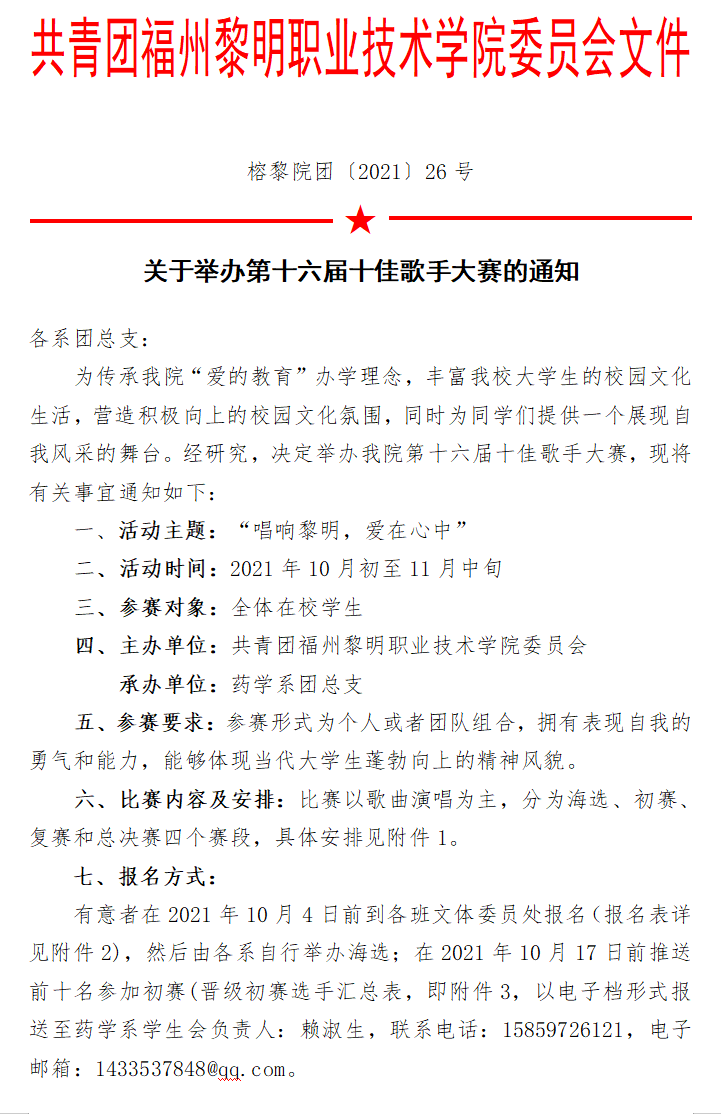 榕黎院团〔2021〕26号————关于举办第十六届十佳歌手大赛的通知