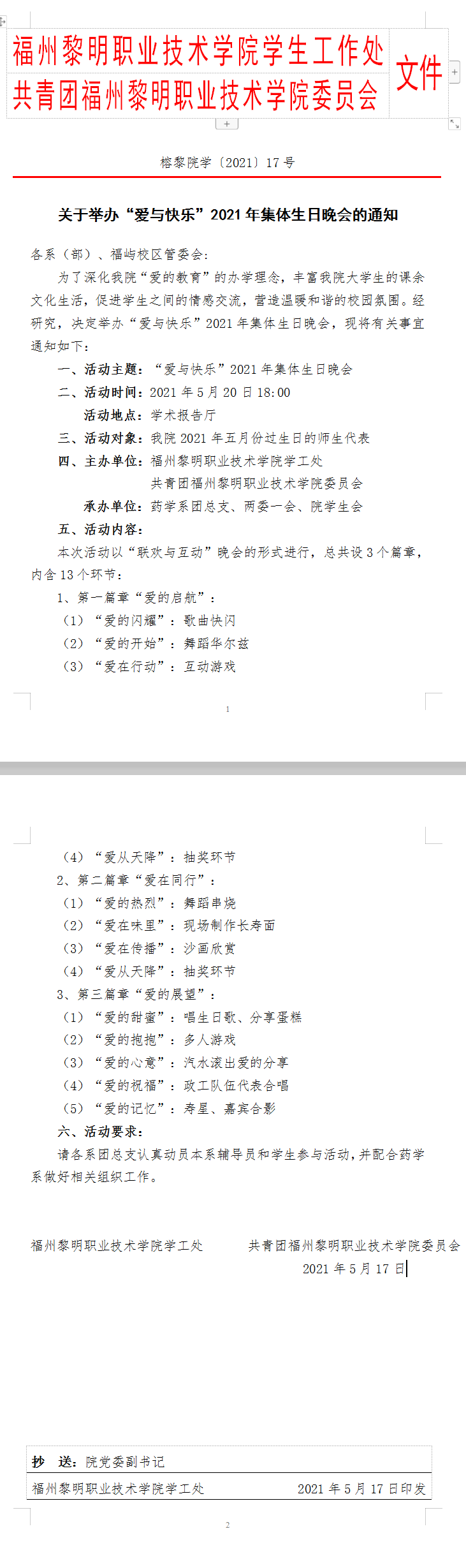 榕黎院学〔2021〕17号——关于举办“爱与快乐”2021年集体生日晚会的通知