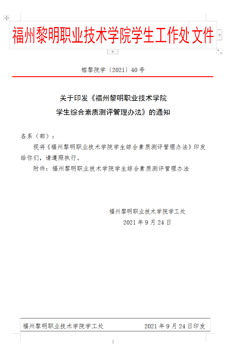 榕黎院学〔2021〕40号——关于印发《福州黎明职业技术学院学生综合素质测评管理办法》的通知