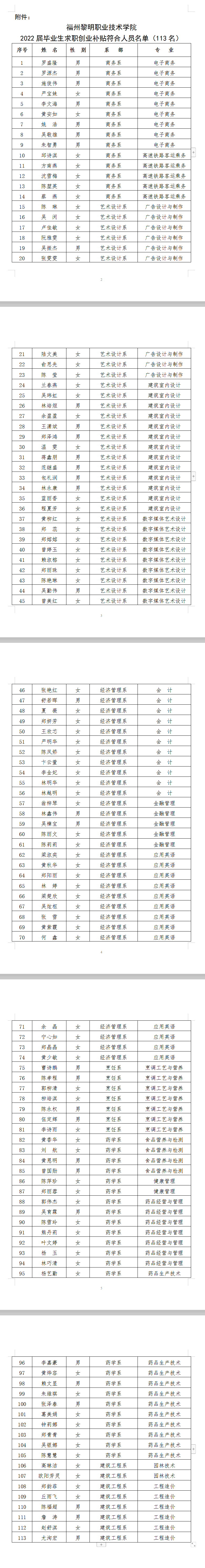 榕黎院学〔2021〕45号——关于罗盛隆等113名同学通过2022届毕业生求职创业补贴审核的公示