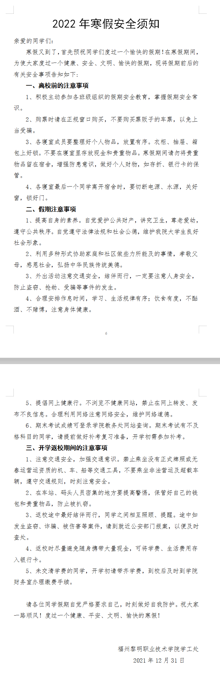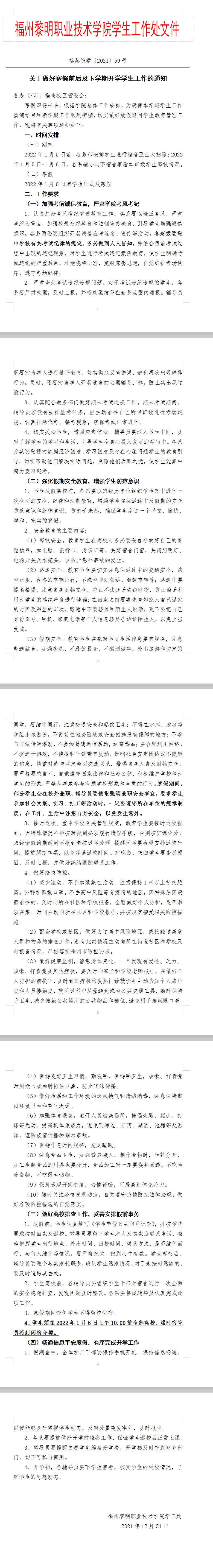 榕黎院学〔2021〕59号——关于做好寒假前后及下学期开学学生工作的通知