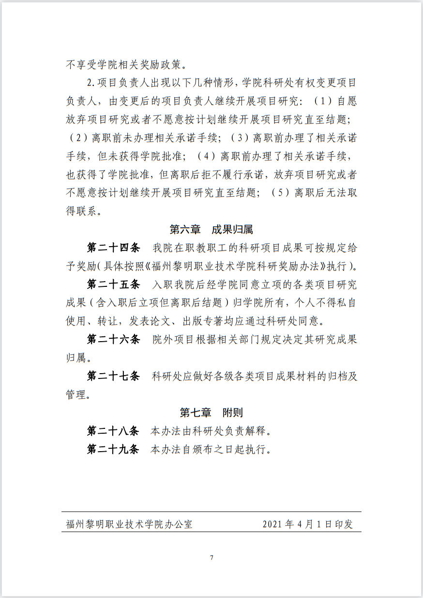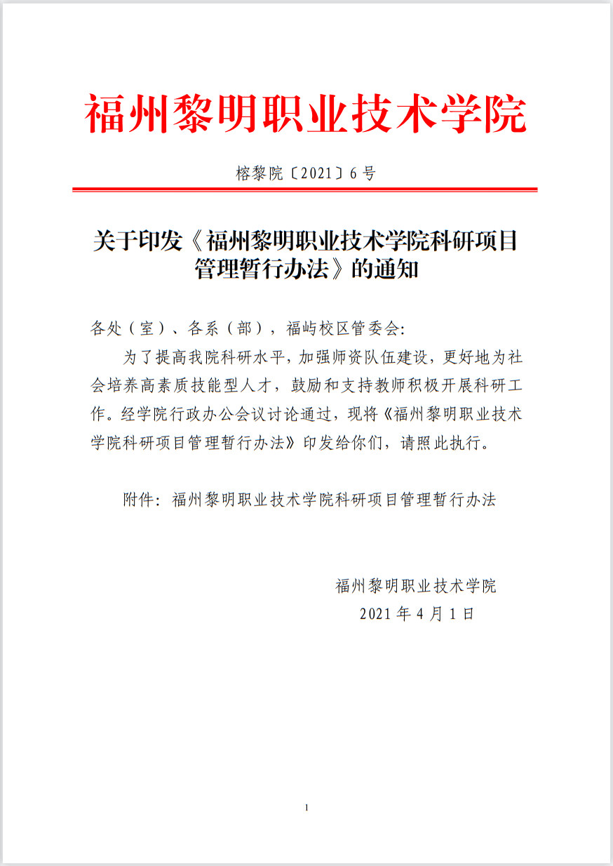 关于印发《福州黎明职业技术学院科研项目管理暂行办法》的通知