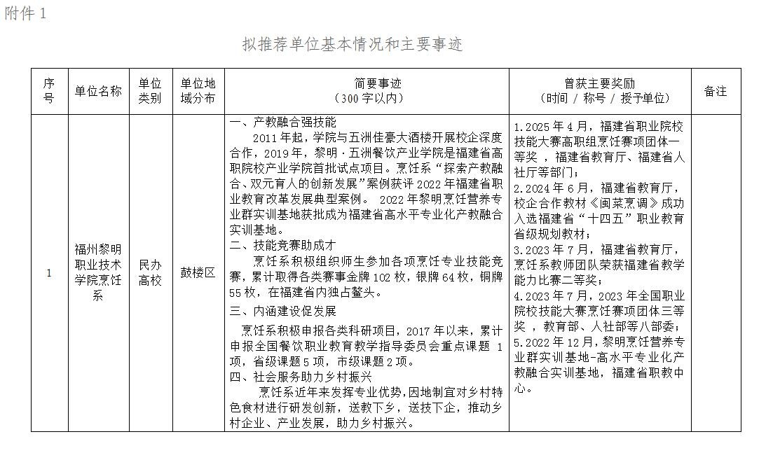 附件:1.拟推荐单位基本情况和主要事迹