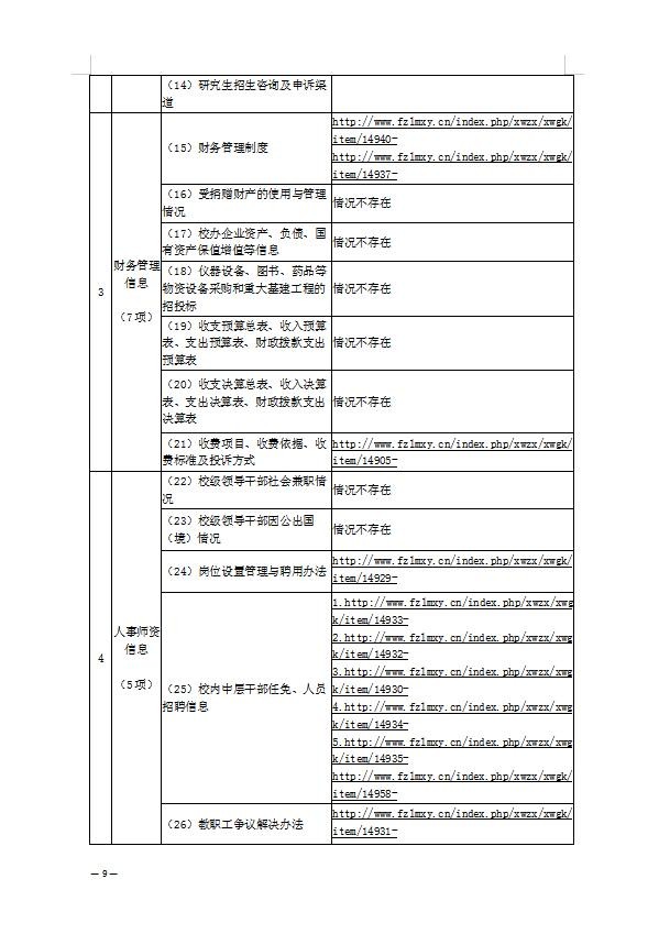附件:福州黎明职业技术学院清单事项公开情况表