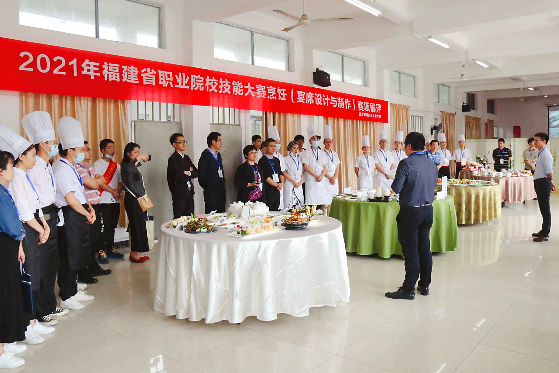 飘香四月迎盛会,精英云集添华彩。4月27日,2021年福建省职业院校技能大赛烹饪赛项(高职组)在我院福屿校区顺利举行。本次大赛由福建省教育厅、福建省人力资源和社会保障厅、福建省财政厅、福建省农业农村厅、福建省卫生健康委员会、福建省总工会、共青团福建省委、福建省中华职业教育社主办,我院承办。