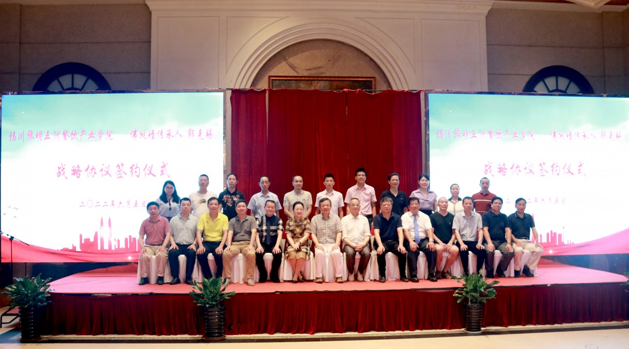 央广网福州6月5日消息(记者 童正忠)闽菜文化传承迎来一件大喜事,闽菜培训的产教融合翻开新的一页。6月5日上午,福建省福州黎明餐饮产业学院与“佛跳墙”传承人郭克赐签署战略合作仪式,国际中餐大师、“佛跳墙”传承人、闽菜文化研究中心创始人郭克赐先生携团队加盟学院,学院聘请郭克赐、金宁飞、叶武三位闽菜大师为客座教授。今后,双方将合力做好佛跳墙闽菜文化的传承、弘扬、学员培训,大学生亦将成为传承弘扬佛跳墙闽菜的文化使者。
