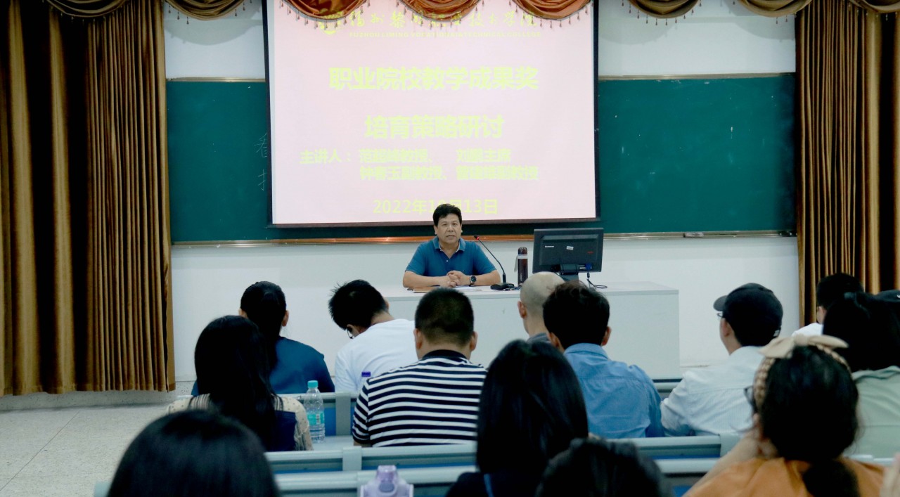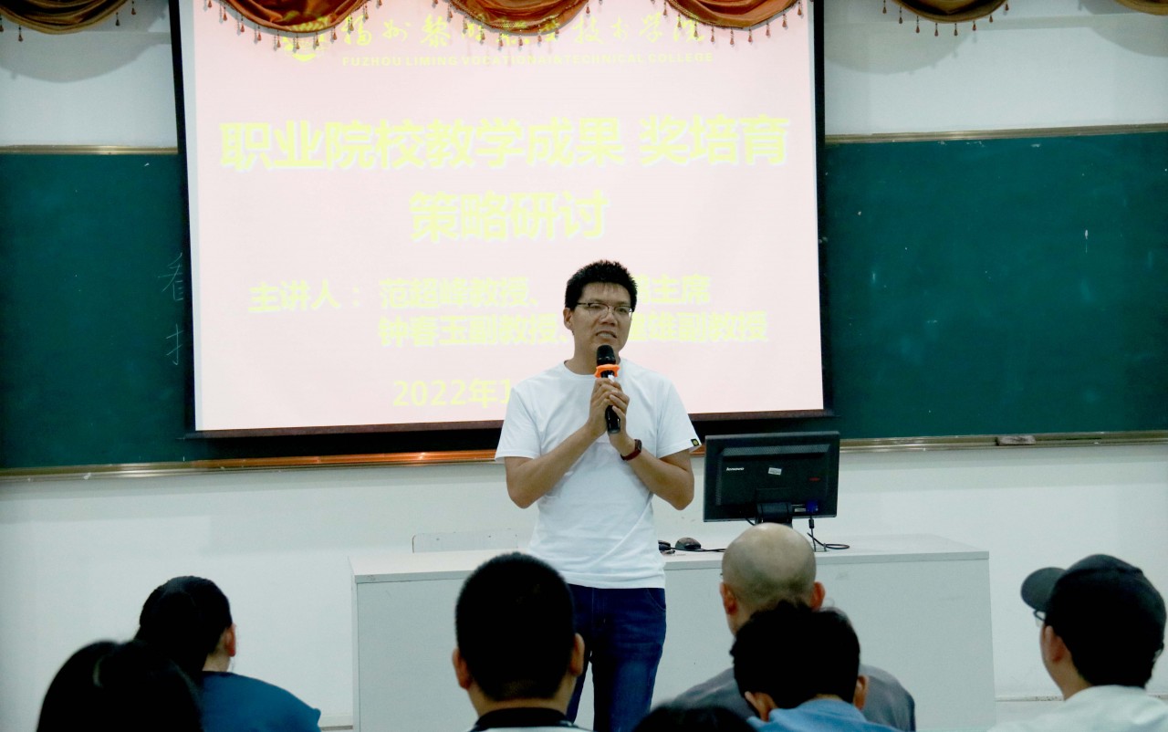 为进一步推动教学建设和教学改革,引导全院教师潜心教书育人,提高教师业务能力和教学水平,教务处拟定于2022年10月-11月组织开展教师教育教学能力系列提升专题培训讲座。10月13日下午,教师教学能力提升系列讲座(第一期)“职业院校教学成果奖培育策略研讨”在我校综合楼207顺利举行。学院院长范超峰教授、工会主席刘鹏、董事长助理陈玉池,以及教学管理相关人员、所有专任教师参加了讲座,讲座由教务处副处长邱娇玲主持。