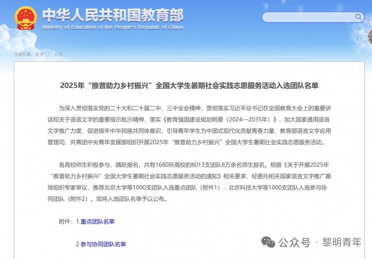 近日,教育部语言文字应用管理司与共青团中央青年发展部联合公布了2025年“推普助力乡村振兴”全国大学生暑期社会实践志愿服务活动入选团队名单。我院药学与健康管理系“药心筑梦泰宁,普语赋能振兴”团队经审议,从全国1680所高校的8013支团队中脱颖而出,成功入选。