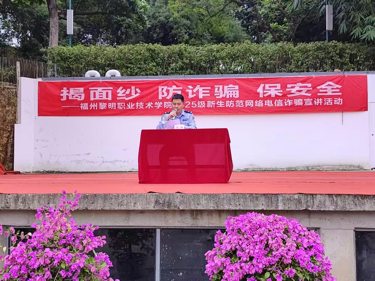 为进一步增强我校师生防范网络诈骗的意识和能力,筑牢校园安全防线,有效预防和减少电信网络诈骗案件的发生,11月6日下午4时,我校邀请了南屿派出所吴伟警官来校,为2025级新生举办了一场生动而实用的防范网络诈骗专题宣讲会。