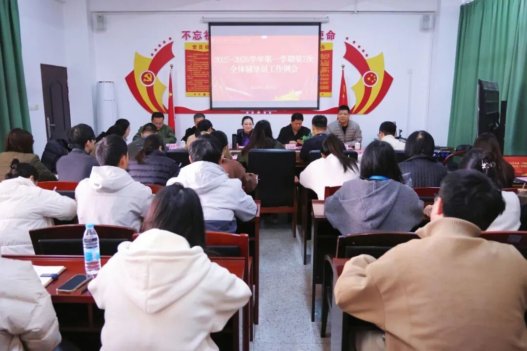 为及时总结阶段工作成效,分析研判当前重点任务,推动下一阶段学生工作扎实有序开展,12月16日,学工处召开了2025-2026学年第一学期第七次辅导员工作例会。学院董事长王苏华,院长范超峰,党委书记廖诗忠出席会议。学工处全体干部、各院系党总支(支部)负责人及全体辅导员参加会议。会议由党委副书记刘鹏主持。